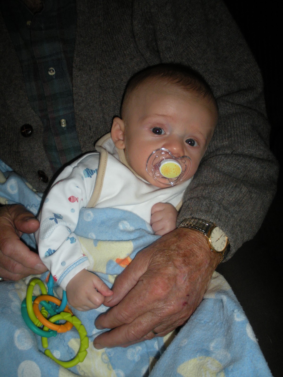 He has been a very busy boy this month. Month 3 to 4 has been so much fun. This past month his eyes have opened wide and he is taking it all in. He: