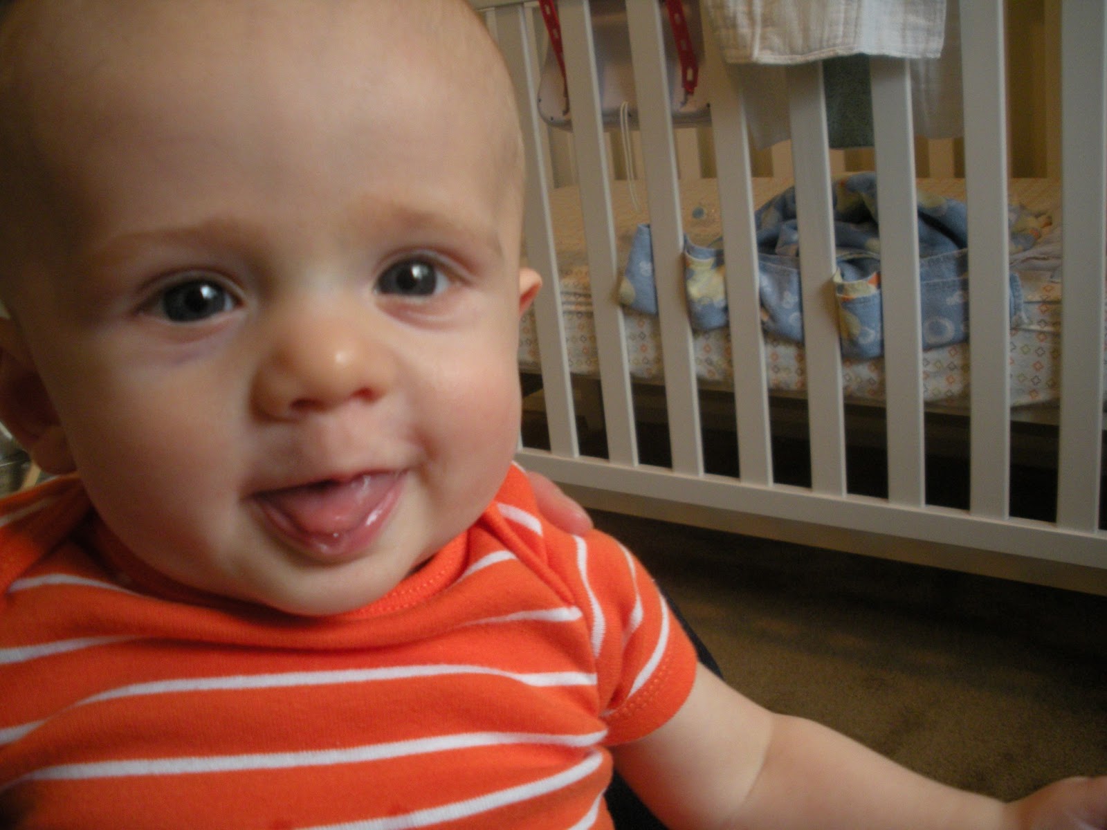 At 5 months Logan is silly, talkative, playful, energetic, and curious.