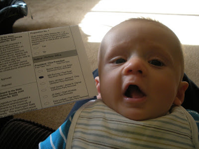 His big milestone this month = rolling from tummy to back on November 9th. :)