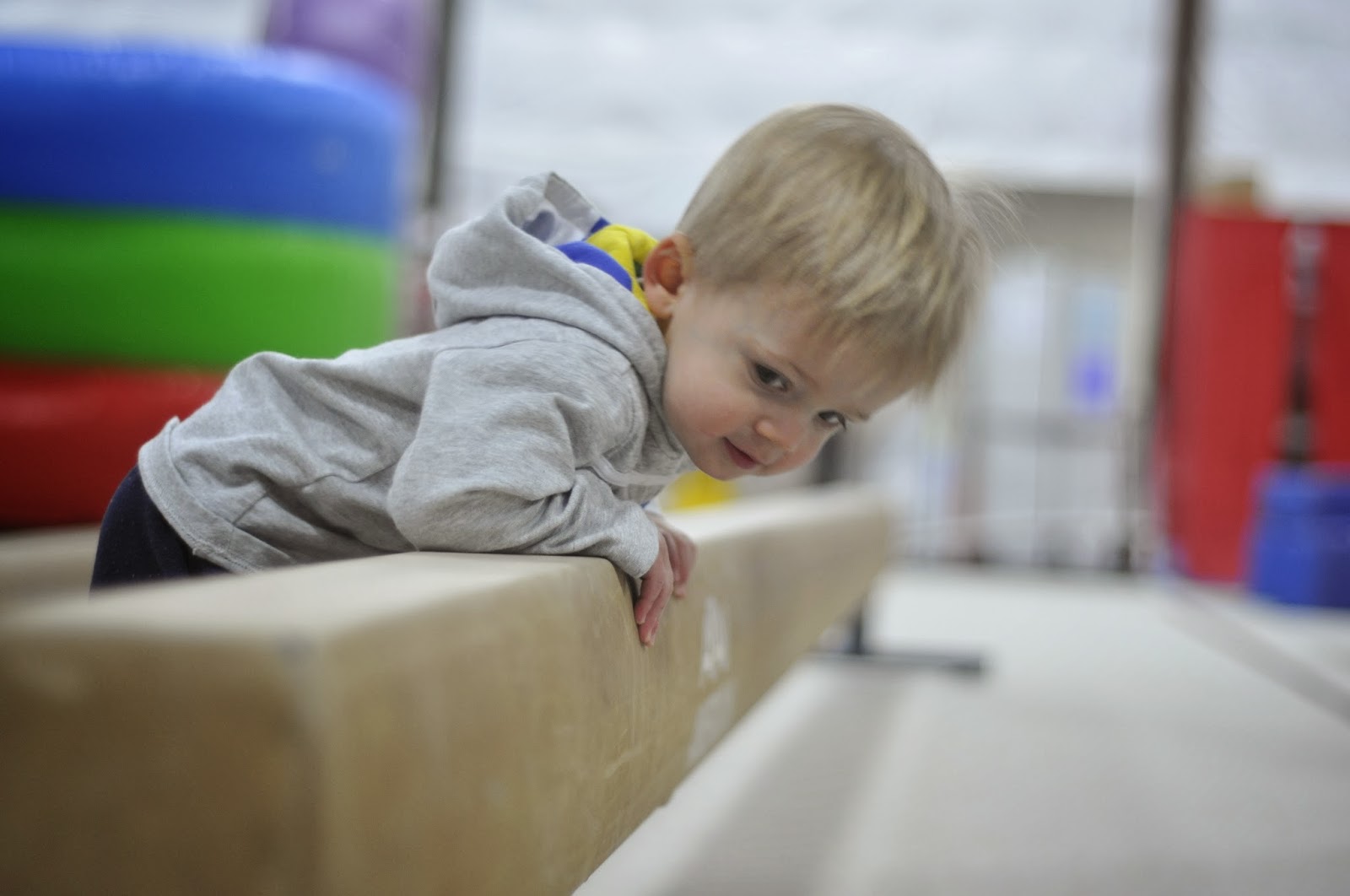 And Grandma Woodhouse is so fun! She took a break from tumbling on the bouncy floor to show Logan the balance beam. ;)