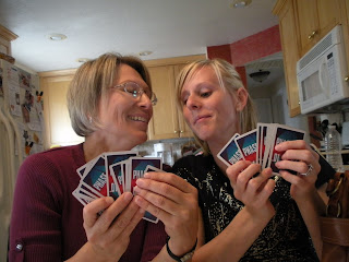 This family is always up for a good card game. I caught my sweet, innocent mother peeking at my cards several times so I had to tease her and document it.