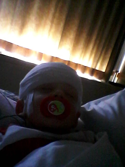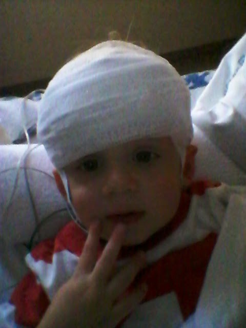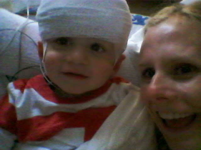 They wanted Logan to have an EEG the day before the appointment. It was a little sad. Logan is the kind of baby that doesn't want you to wash his hair, brush his teeth, and for a while- even change his diaper. In short- he doesn't liked to be messed with.