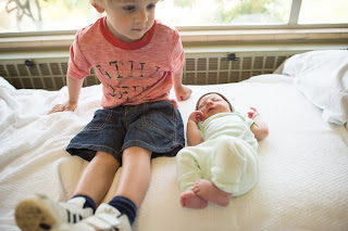 Rudy is just over a month old and is laying next to me looking everywhere with those big blue eyes (and tooting like a champ). Brother has taken a break from smothering Rudy with kisses and is napping. Since bringing him home I have been continually amazed at how well this Mother-of-two thing is going. Not to say my patience isn't tested atleast hourly- and I often go to bed feeling like I failed, asking my Father in Heaven for help doing better the next day. I had prepped my mind for the worse possibility- Everything I did I would think how in the world am I going to do this with a baby?? But Rudy is an amazing baby. And Logan...well, he has continued being sweet Logan. He was thrilled to meet the baby we had been talking about for so long. The first thing he did when we brought him home was bring his favorite toys to share. Rudy is the first thing he asks for when he wakes up, and his imagination has seemed to kick in just in time to keep himself busy during feedings. He hasn't once become angry with Rudy. The worst that's happened is that he lays on him to give kisses. I think I say "Okay, that's enough kisses" about 1,387 times a day.