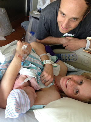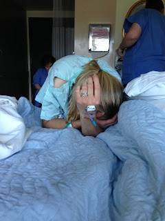 There I stayed on my side facing my three helpers- Jeff near my head rubbing my hair, Mom- where I could squeeze her arm, and Joanne- offering words of encouragement and waiting to greet her grandson.