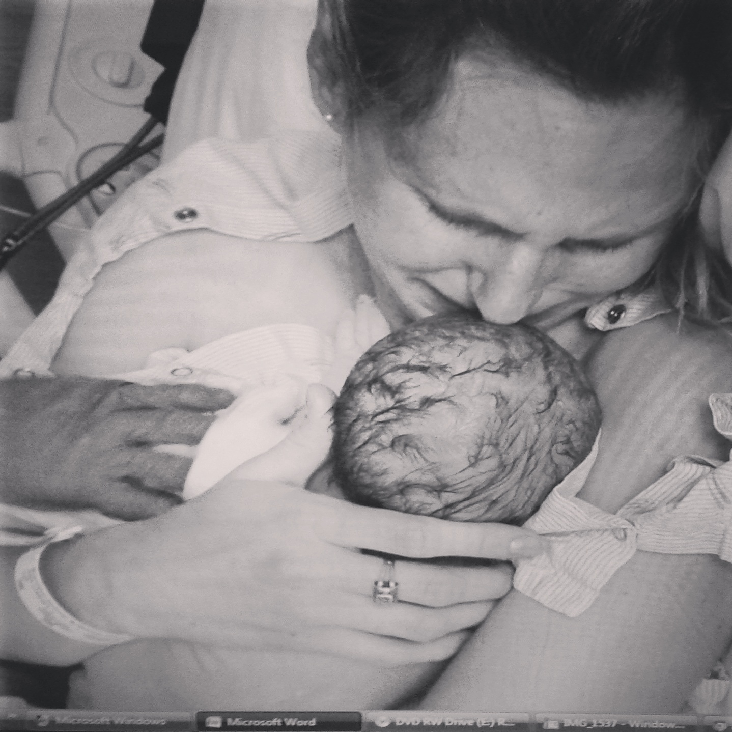 I don't remember how long I pushed but I remember feeling like I couldn't do it. I remember wanting it to be over so badly. I was grateful for Jeff's constant reassurance that this was almost over. I remember gripping my Mom's arm so hard that even in the middle of it I was worried I was hurting her.